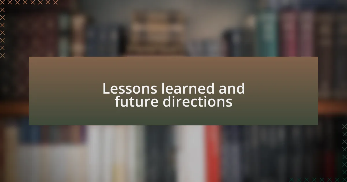 Looking to the future, I am compelled to focus on sustainability in our projects. I learned that without careful planning for long-term engagement, initial successes can fade. During one initiative, we failed to establish ongoing funding, which left a void after our initial excitement. It was a tough lesson, but it inspired me to prioritize follow-up strategies and community ownership in all future endeavors. I often ask myself, what sustainable practices can we implement now to ensure our work thrives long after we’ve left?