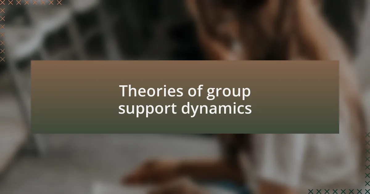 When discussing theories of group support dynamics, one prominent framework is Tuckman’s stages of group development: forming, storming, norming, and performing. I vividly recall a team project where we progressed through each stage, from initial hesitance to robust collaboration. It was fascinating to observe how conflicts during the storming phase ultimately led to stronger bonds and more effective teamwork.